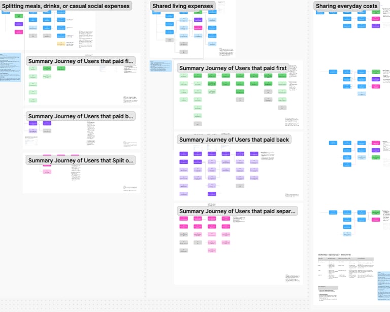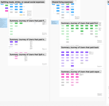 We explored multiple variations of the bill splitting experience, including concepts that incorporated AI to automate expense detection and summarization. While these ideas showed strong potential, we decided to prioritise a simpler direction for now due to technical feasibility and the maturity required for reliable AI behaviour. This exploration helped us refine what was possible for the current stage while keeping more advanced ideas in our long-term roadmap.