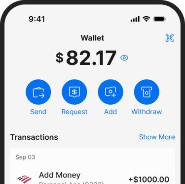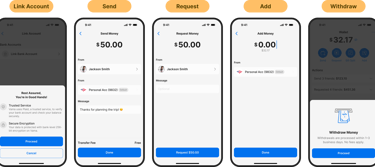 A key feature included in the MVP is the chat interface with built-in send/request money actions.