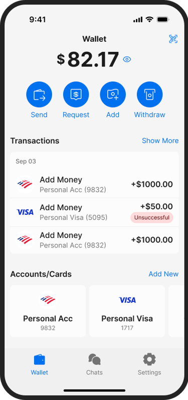 Combining these core wallet functions with the conversational flow enables a complete, user-centric money experience right from the MVP that's functional enough for real-world use and scalable enough for future development.
