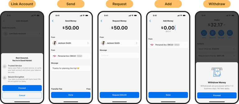 Competitive research from current bank and payment apps to see what patterns they’re used to